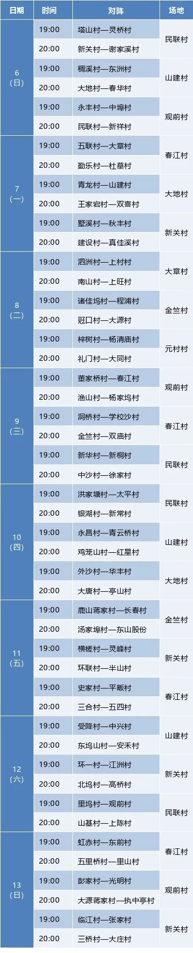 Конкурс состоялся в девяти соревнованиях: Минлианская деревня в подрайонной районе Дунчжоу; Деревня Дади, деревня Джинчжу и деревня Гуанцяна (Чжогунву) в подрайлевском имену; Деревня Чунцзян и деревня Шаньзян в подрастинге Чунцзян; Деревня Юань в городе Ксинденг; Баскетбольный зал Changlv Town; и деревня Xinguan в городе Дейуан Полем В этом году еще больше людей смогут наблюдать за захватывающими играми прямо у своего порога.